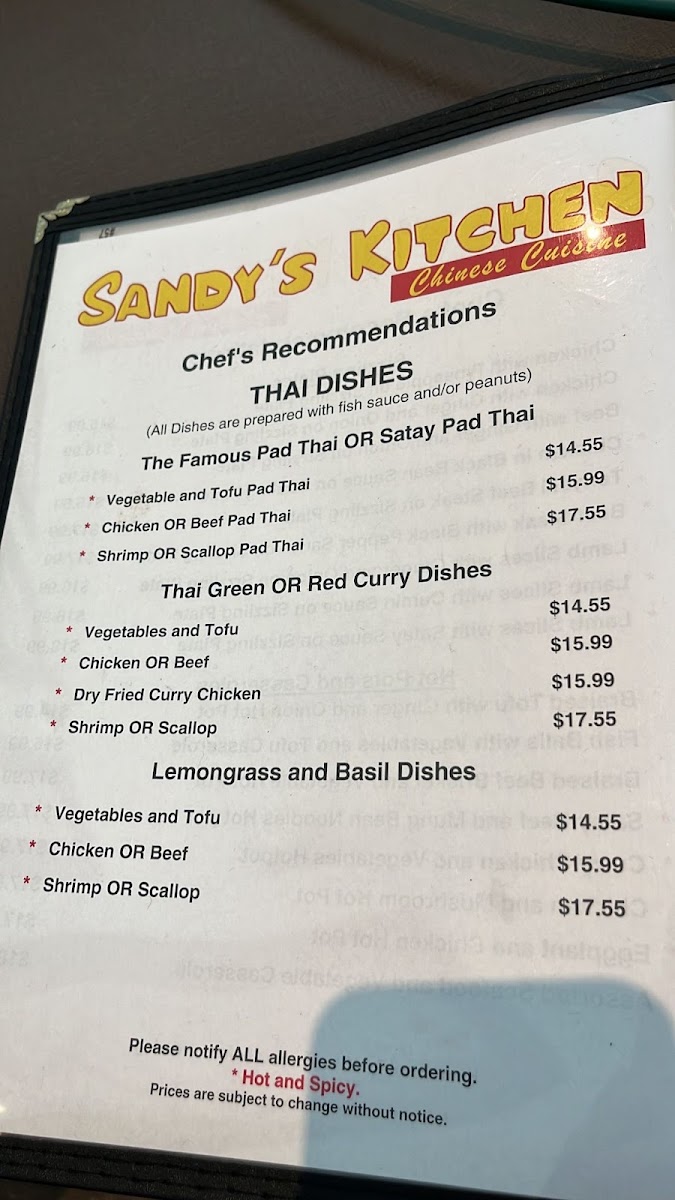 Whether you're dining in or taking out, Sandy's Kitchen promises a delicious meal that keeps you coming back for more.